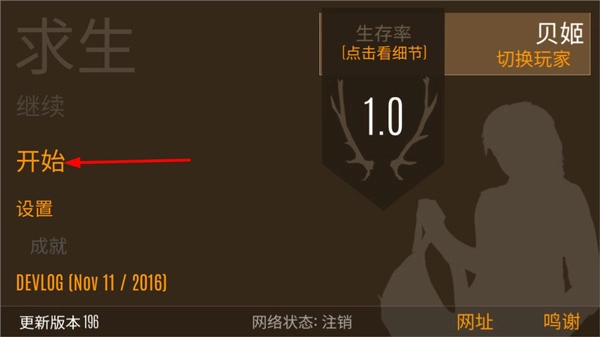 在游戲菜單界面,玩家能夠對游戲音樂、各類開關以及模糊效果等進行設置,還可以查看生存率數據,之后點擊開始按鈕進入游戲。