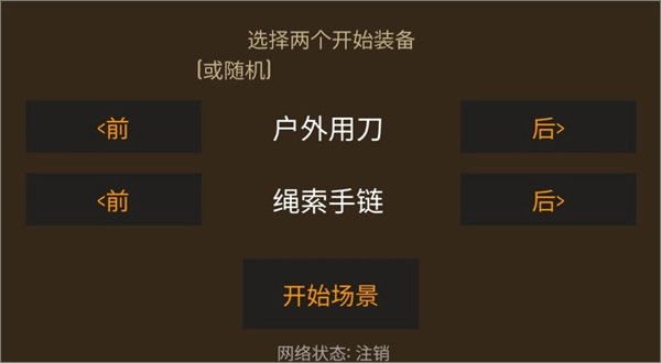 玩家進入游戲時,需先選擇野外求生場景,可選場景包括獨木河與山脈;同時還要選定求生難度,分為新手難度(對應野營模式)和專家難度(對應生存模式)。