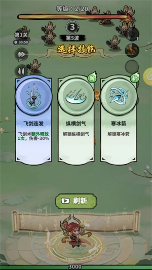 每次升級都能學(xué)會一個技能,你也可以通過看廣告來刷新這些技能