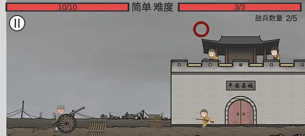 游戲開(kāi)始后,我們要朝著城墻上的敵人和前來(lái)進(jìn)犯的敵人開(kāi)炮,把所有倭寇都消滅就能通關(guān)。