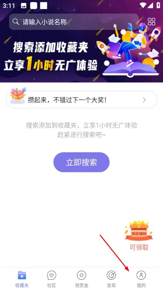 打開飯團探書,點擊頁面右下角的我的,進入個人頁面。