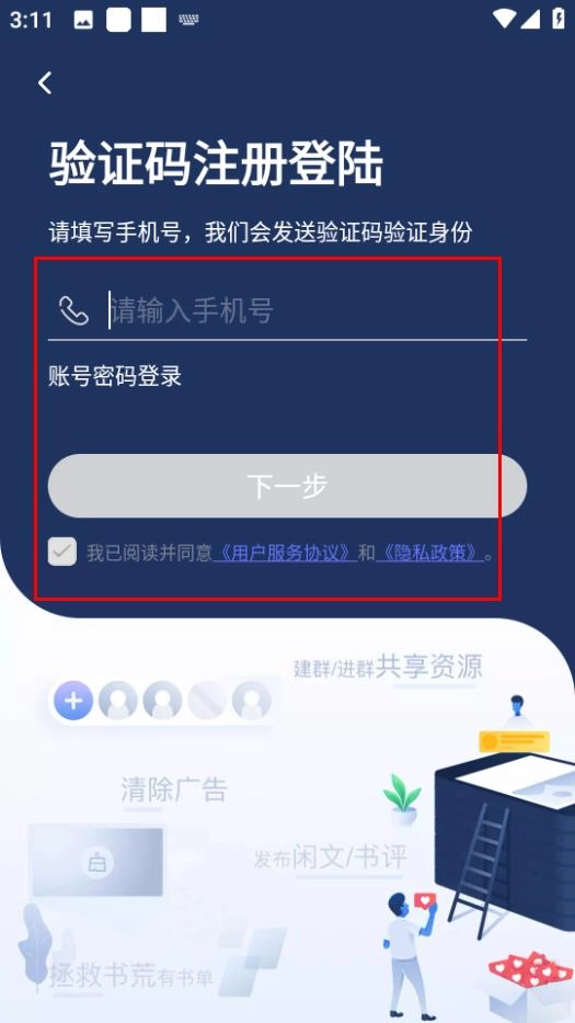 輸入手機號,勾選同意協議后,點擊下一步完成注冊流程。