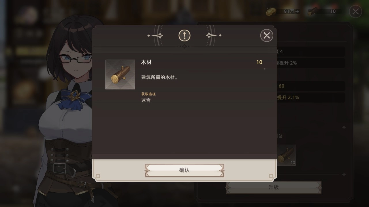 升級所需的【木材】與【石料】可在迷宮中獲取。