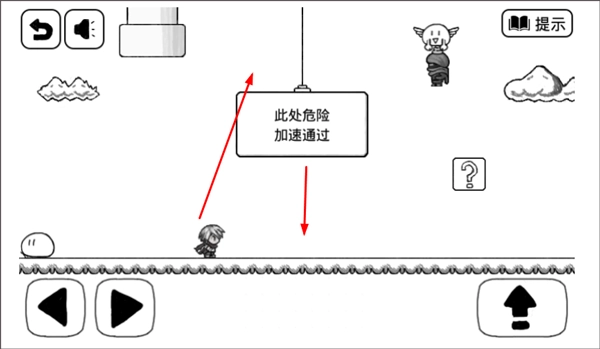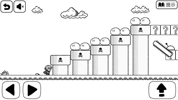 在這款比較簡單的大冒險游戲里,還加入了各式各樣的怪物。闖關過程中,你常常會毫無預兆地突然失敗,不過不用在意,游戲里的陷阱和坑可以說是無處不在。