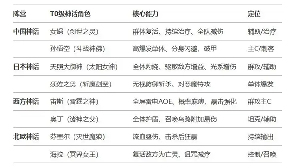 一、神話角色強(qiáng)度排名(按陣營/定位劃分)