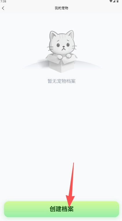 要建立新檔案,可在寵物檔案頁點擊底部的綠色“創(chuàng)建檔案”按鈕。