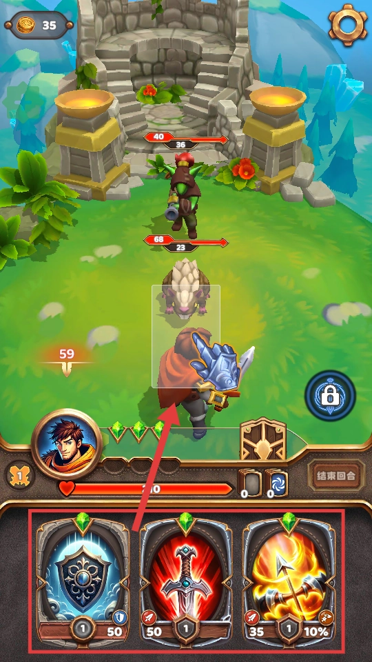 挑選下方的卡牌,向敵人發動進攻,提高戰斗中的傷害輸出。