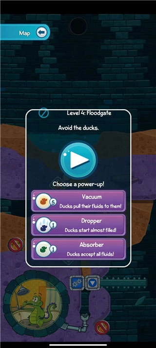 你可以選擇自己要挑戰(zhàn)的關(guān)卡,像圖里展示的那樣,關(guān)卡分為兩種模式:一種是常規(guī)玩法,要求把水分給鴨子;另一種則是特殊玩法,規(guī)則是不能讓鴨子接觸到水。