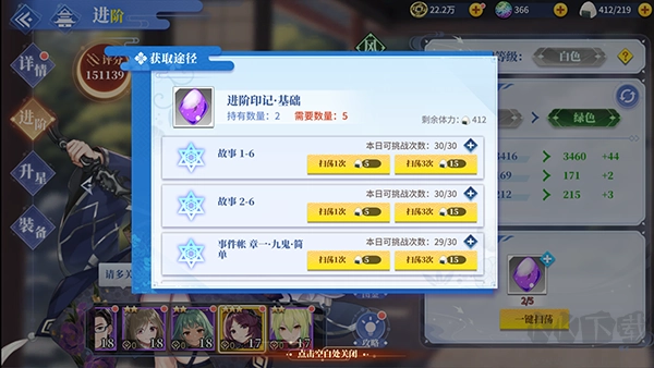 當進階材料不夠時,你可以點擊該材料,然后用一次掃蕩就能快速獲得它。