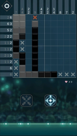 每一行和每一列都會有一個數字提示,紅色的“X”代表打雷,每點錯一次將扣一條命,健康清掃挑戰失敗。