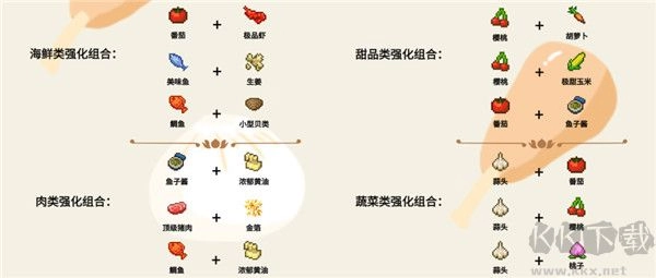 每種菜品根據(jù)其自身的風(fēng)味以及品類,都有與之最適應(yīng)的強化食材,這部分只能通過平時的日常積累自行摸索,這里只能羅列一些比較通用的以供參考
