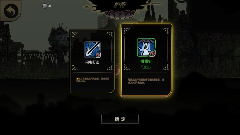 擊敗敵人后有一定概率能獲得兩張強化卡牌,從中任選一張即可。