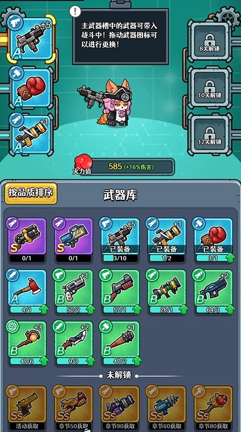 主武器槽里的武器能被帶入戰(zhàn)斗,而裝備副武器可以提升戰(zhàn)斗內(nèi)的刷新幾率,另外,攜帶武器還能增加火力值,使戰(zhàn)斗進(jìn)行得更輕松。