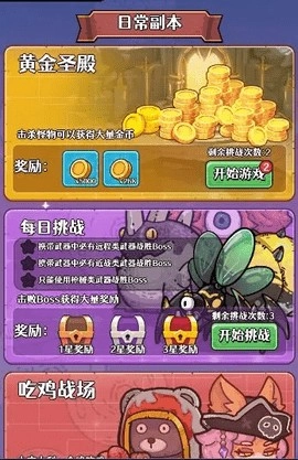 每日活動包含黃金圣殿、每日特殊條件挑戰(zhàn)以及吃雞戰(zhàn)場,每天參與這些玩法就能獲取豐厚獎勵,可別錯過啦