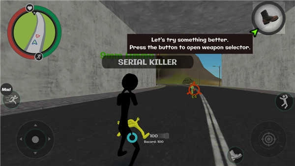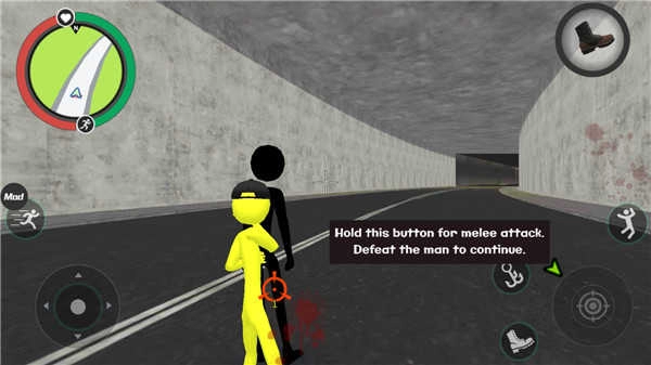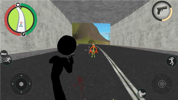 左側控制移動與加速,右側負責繩索操作與攻擊(跳躍),跳躍鍵獨立設置;右上區(qū)域的武器切換功能,以及血量、經(jīng)驗的數(shù)值都能實時更新,狀態(tài)信息一目了然。玩家可自由選擇玩法,與其他幫派成員展開交火——擊殺敵人能獲取經(jīng)驗,連續(xù)擊殺會累積星級,屆時警察與周邊角色將對你重點“關照”,發(fā)起猛烈攻勢。而如何在激戰(zhàn)中存活、如何成功消滅對手,正是你需要完成的核心任務。