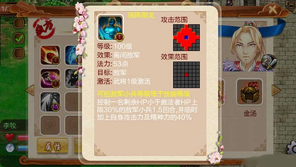 李牧的調兵遣將技能十分出色,能幫你解決走位上的困擾——要是有人走錯了位置,他能讓其重新行動調整;也能號令將士向前沖鋒。最關鍵的是,這項技能在不消耗回合的情況下就能完成移位操作,方便你更好地排兵布陣。他真是一位十足優秀的統帥!