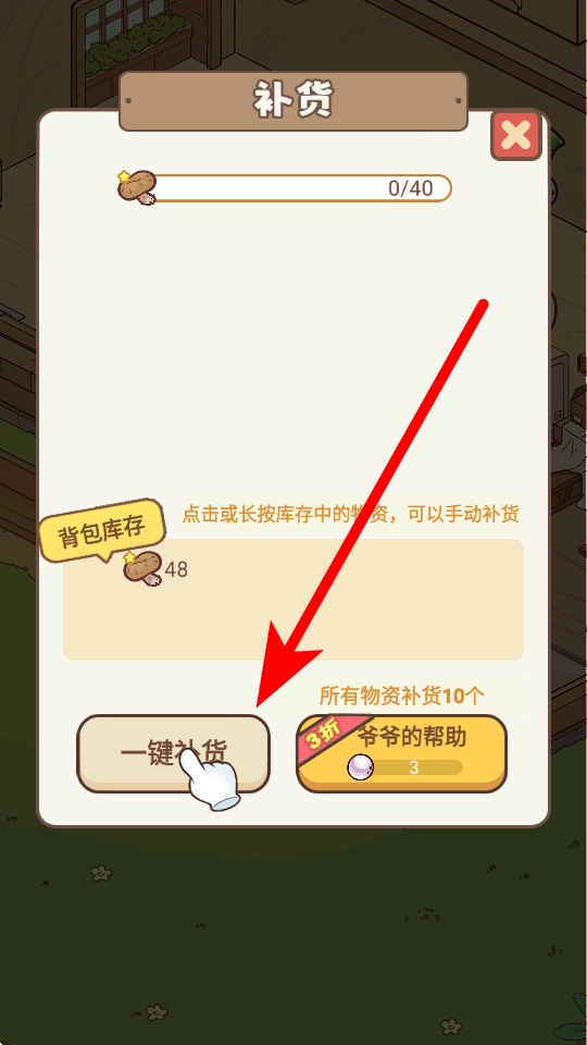 在備貨環節,你可以查看背包里的庫存情況。要是食材數量充足,就能點擊一鍵補貨功能,這樣餐廳所需的物資就能快速得到補充,為后續給顧客提供餐品帶來便利。
