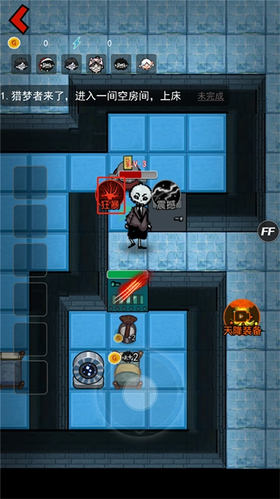 進入游戲后,玩家要操控獵夢者拆除睡夢者的門。當狂暴技能的圖標亮起時,玩家點擊該圖標,就能提升自身的戰斗力。