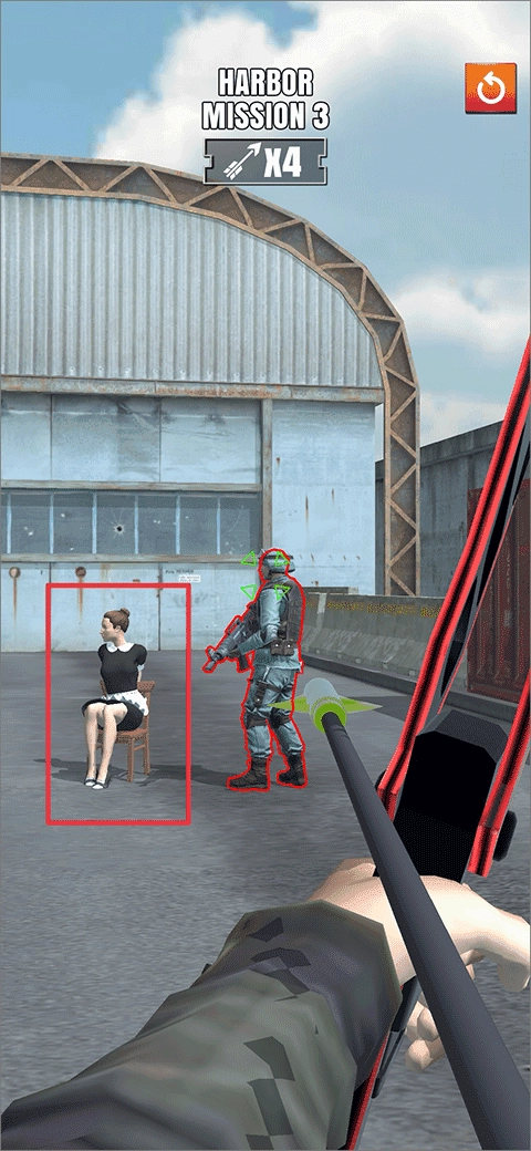 然后使用弓箭消滅所有敵人,成功解救人質后就能通關。