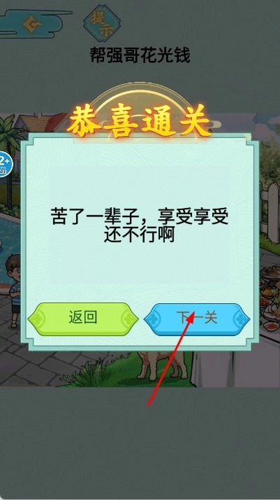 成功通關后,彈出恭喜通關,點擊下一關,繼續挑戰新關卡。