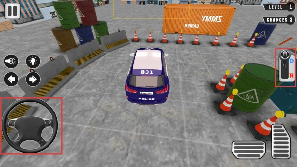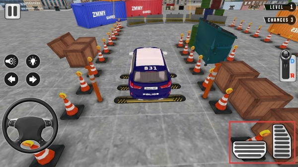 進入游戲,控制右側剎車和油門踏板,平穩啟動車輛,準備挑戰停車關卡啦。