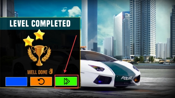 成功停車后,點擊綠色箭頭按鈕,就能進入下一關,繼續挑戰更高難度啦。
