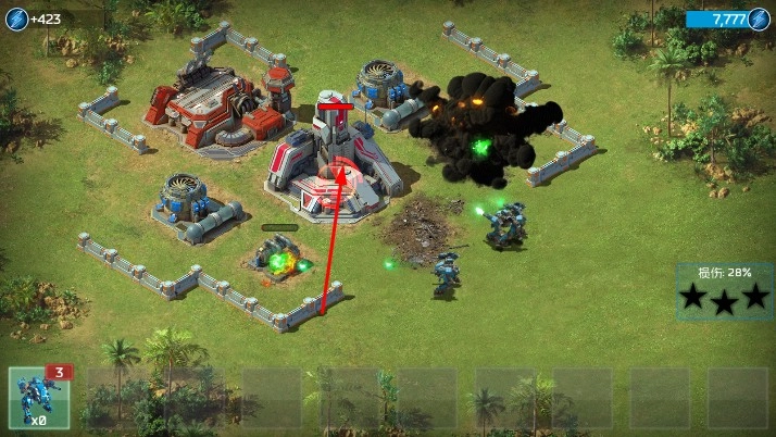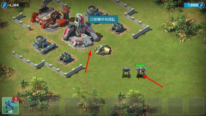 完成基地部分建造后,點(diǎn)擊已部署的部隊(duì),指揮它們向敵人的防御設(shè)施或基地發(fā)動(dòng)進(jìn)攻,觀察戰(zhàn)場局勢,安排部隊(duì)的進(jìn)攻路線和攻擊目標(biāo)。