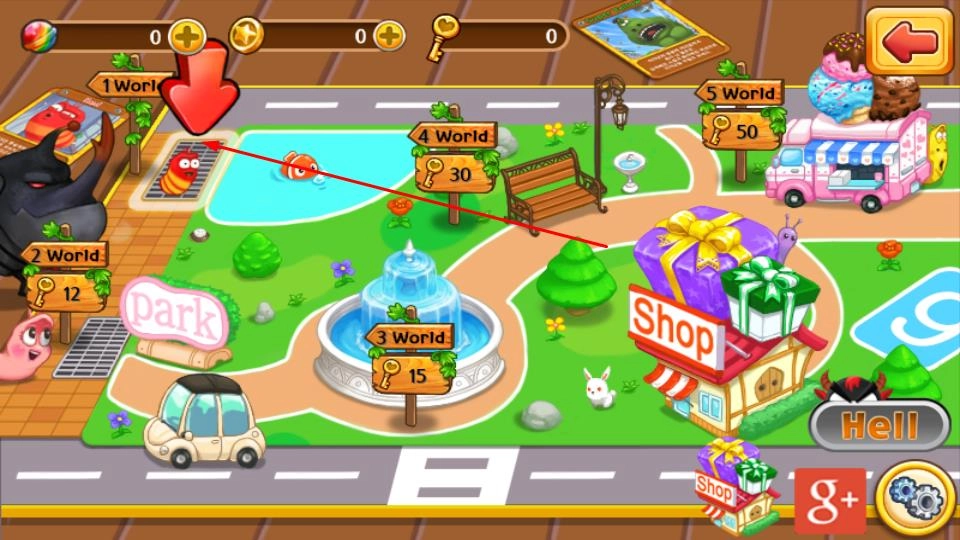 在世界選擇界面點擊標有鑰匙數量的世界標識如1World,進入對應關卡地圖,開啟冒險進程。