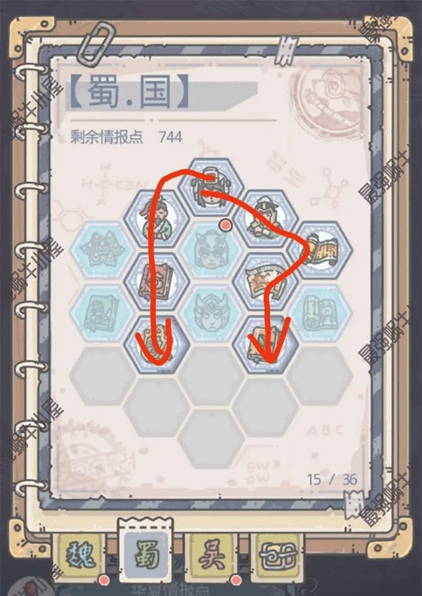這三張地圖沒有前后之分,大家按照我的箭頭方向加點就可以了。登用武將然后獻祭隊友隨意。登用的時候把孔融先點出來加幾級,他會給食物,等后期把他點滿后會給一個綠貴,吃他給的食物加血量;