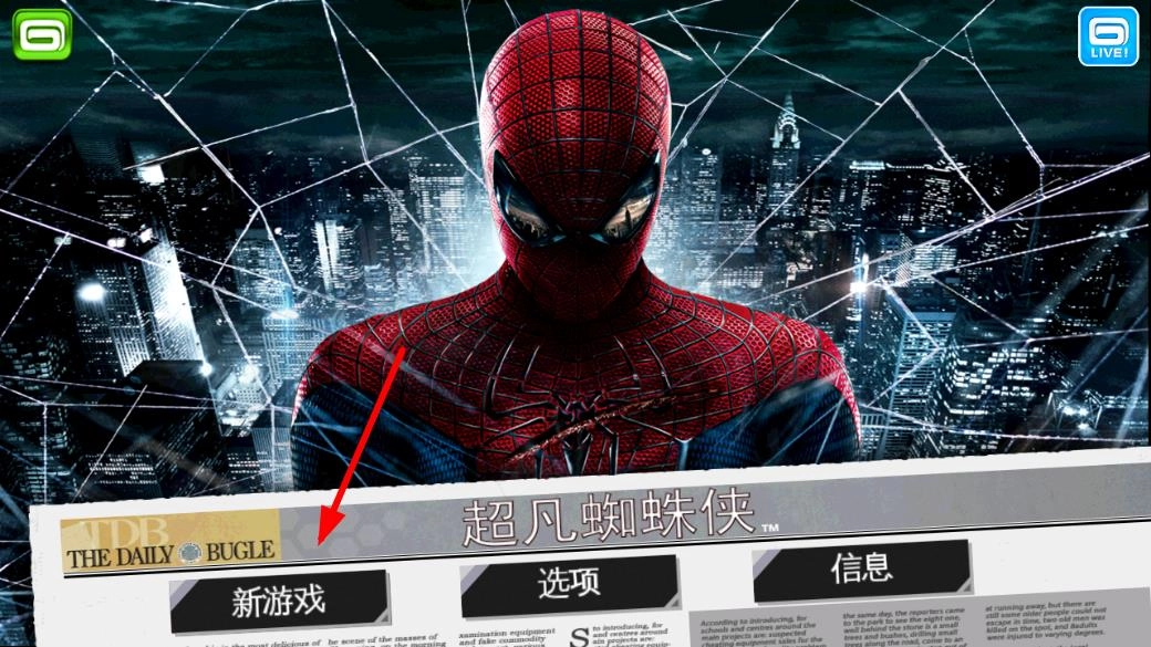 進入游戲后跟隨新手引導熟悉蜘蛛俠的基本操作,通過虛擬搖桿控制移動,利用蛛絲發(fā)射鍵在樓宇間蕩躍,完成首次巡邏并處理簡單的街頭犯罪。