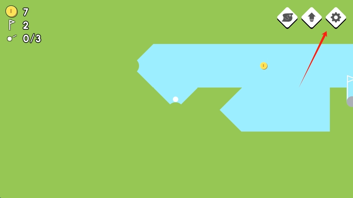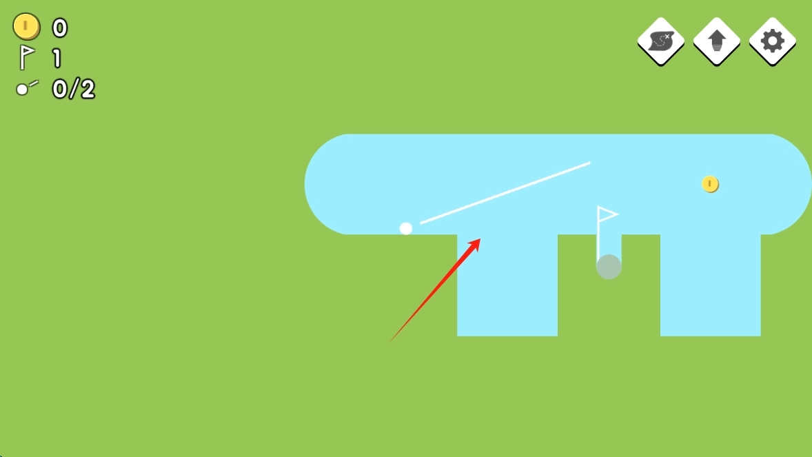在游戲操作界面,留意金幣、球桿和擊球次數等信息。通過滑動屏幕,精準控制白色小球的擊球方向和力度。