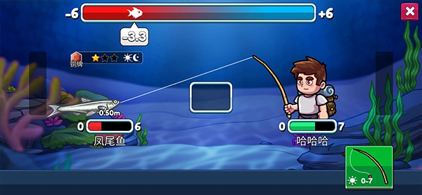 玩家需要掌握遛魚技巧,在頂部你能看到魚的對(duì)抗度,計(jì)量條到了最左邊就會(huì)失敗,相反到了最右邊就成功了,魚會(huì)持續(xù)把計(jì)量條往左側(cè)拉。