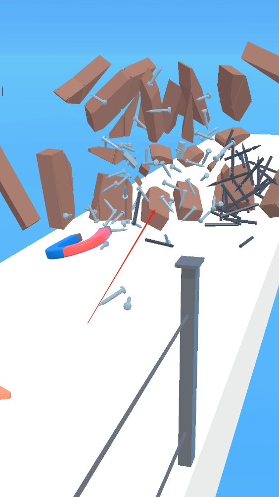 磁力成長的成就感:收集的鐵塊增多,磁鐵的磁力不斷增強,吸附范圍擴大、摧毀能力提升,從只能吸附鐵塊到能帶動大物體撞碎高墻,這種成長感帶來滿滿的成就感。