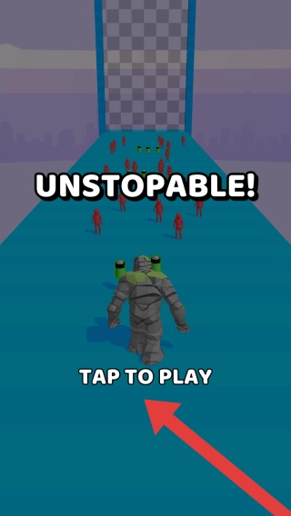 點(diǎn)擊“TAPTOPLAY”即可開啟游戲,游戲畫面中包含機(jī)器人角色、紅色小人敵人等元素,這是一個(gè)動(dòng)作闖關(guān)類游戲的開局引導(dǎo)頁(yè)面。