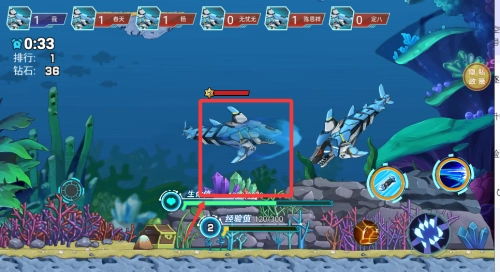 基礎(chǔ)操作簡單易上手,通過虛擬搖桿就能控制移動方向。點擊加速按鈕還能短暫提升游動速度,不管是追擊獵物還是逃離危險都能用得上。