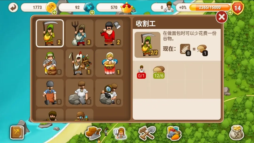 3、建造小屋,為村民提供住宿。你需要先招募村民并為他們安排不同的工作。你會得到村民、農(nóng)民、伐木工人(不是禿頭)、蔬菜采摘工等不同類型的工作。 從長遠(yuǎn)來看,他們獨特的能力將加速村莊的發(fā)展和收獲資源的效率!