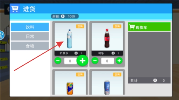 進入界面后,用初始資金采購基礎商品,合理規劃貨架與收銀臺的布局,設計超市的顧客動線,以此吸引首批顧客光臨。