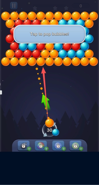 通過滑動屏幕來調整發射角度,點擊確認按鈕后,氣泡就會朝著指定方向射出,從而完成消除操作。