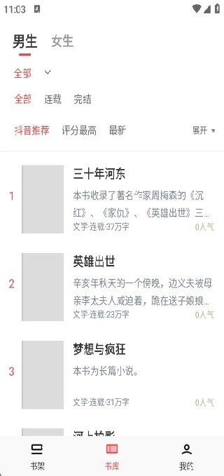 進入書庫就有大量的優質小說,方便你更好的篩選;