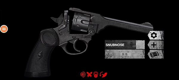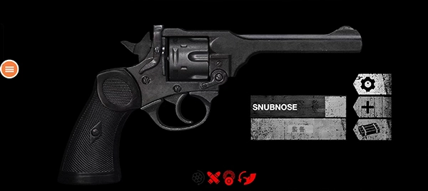 手槍:-扳機-擊錘-滑套-彈匣釋放鈕-保險-滑套釋放桿-彈匣-激光手電-消音器-瞄具-小游戲