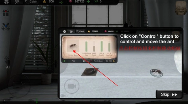 點(diǎn)擊控制按鈕可以用來(lái)控制螞蟻。