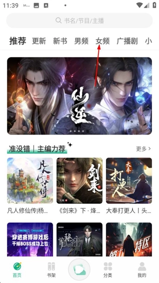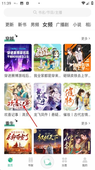 在小梨聽書的首頁(yè),找到并點(diǎn)擊女頻選項(xiàng),即可進(jìn)入女頻小說(shuō)頁(yè)面。