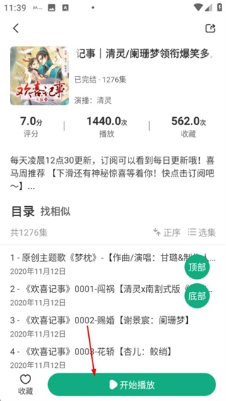 在小說(shuō)詳情頁(yè),點(diǎn)擊開始播放按鈕,就能收聽這部小說(shuō)。