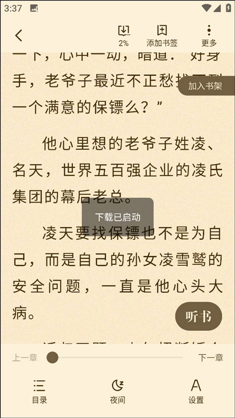 睡前放松時光:開啟夜間模式,調(diào)整字體大小,緩解視覺疲勞,愜意閱讀伴你入眠。