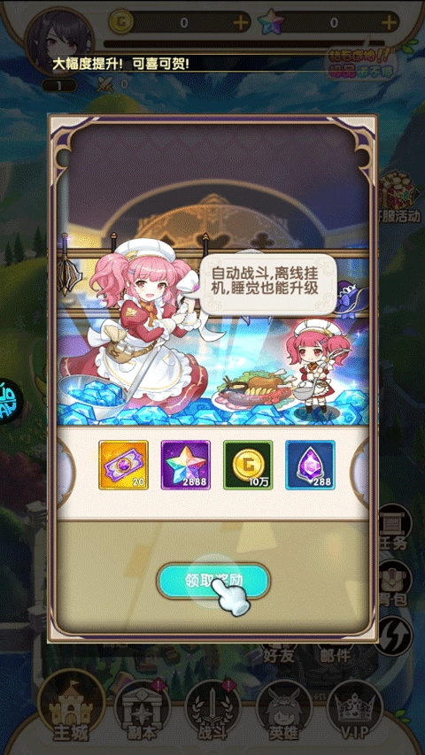 自動(dòng)戰(zhàn)斗力,離線掛機(jī),也能獲得各種游戲獎(jiǎng)勵(lì)。