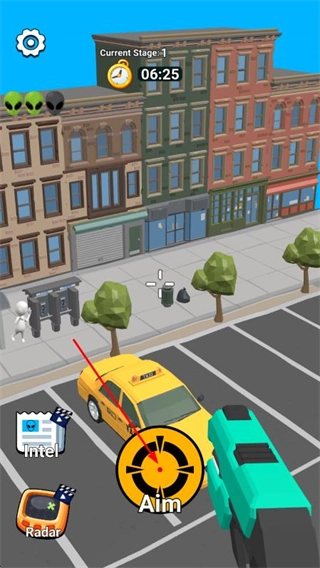 采用卡通3D的畫面風格,城市建筑色彩鮮亮明快、造型小巧可愛,外星人的形象設(shè)計兼具科幻感與萌趣感,這樣的畫面風格在確保狙擊場景清晰可辨的同時,也能讓玩家收獲視覺層面的愉悅體驗。