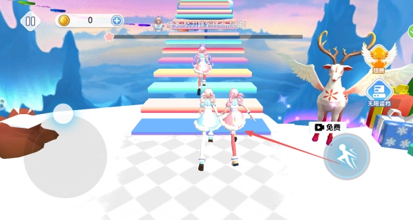 可以用左側方向鍵操控角色在校園里隨意移動,右側的按鍵則用來完成跳躍動作,幫助角色越過障礙物。